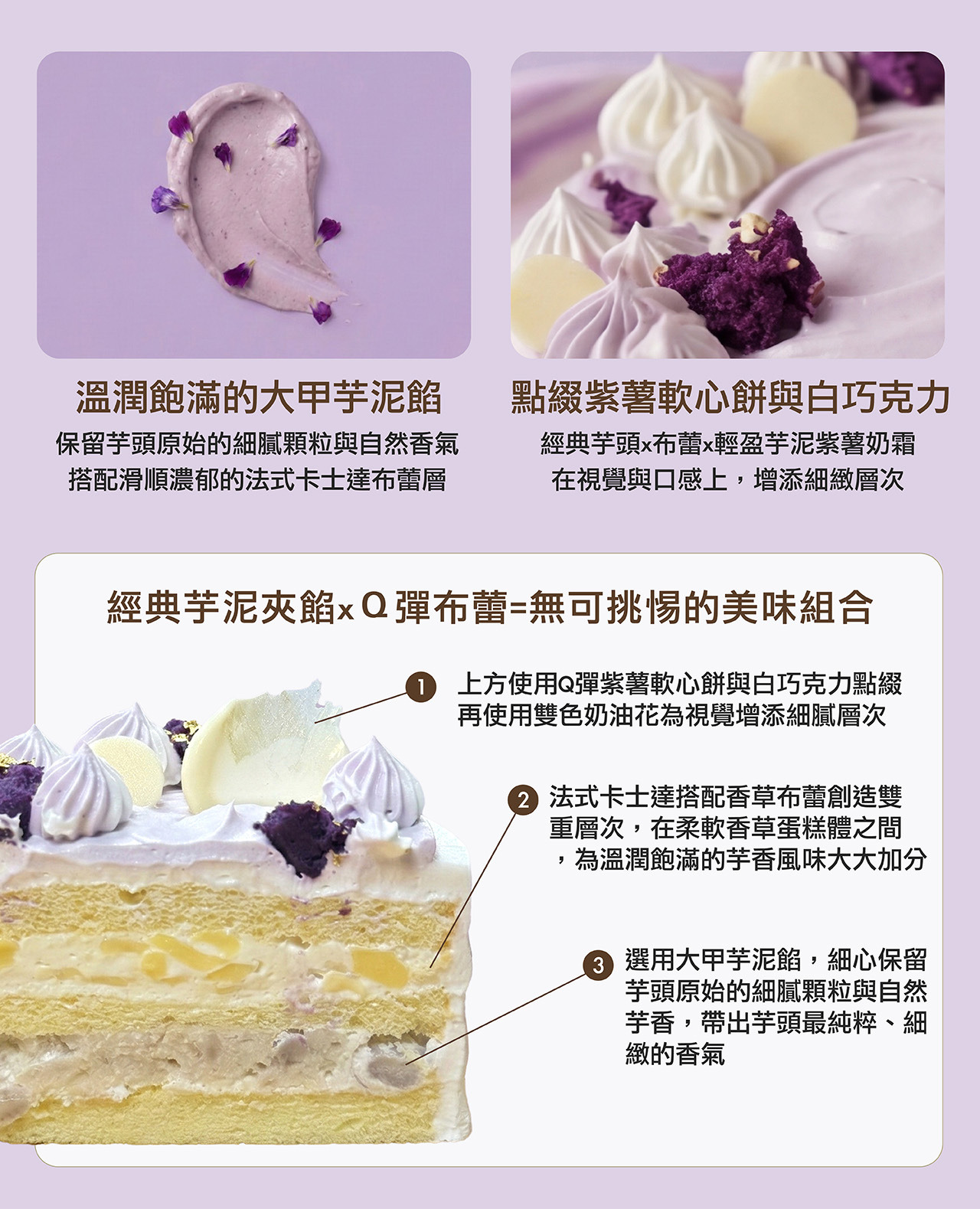 ✦本產品為葷食(上層紫薯軟心餅為葷食,其餘為蛋奶素)。